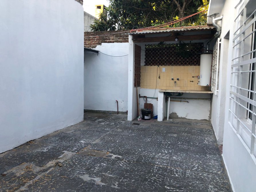 Amplio patio Lavadero semicubierto con bacha y mesada Cocina con alacena y bajo mesada anafes y horno, con espacio para mesa, y ventana al patio Living con ventana al patio