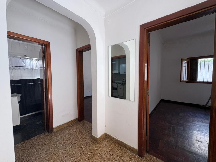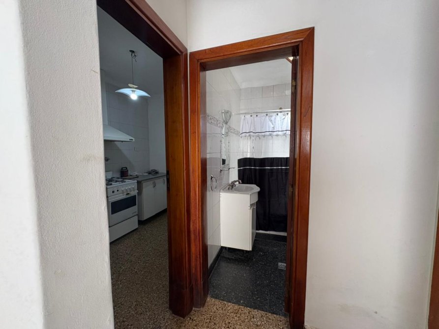 Hall de entrada, cocina amplia, baño completo, dormitorio y livin comedor con ventana balcon.